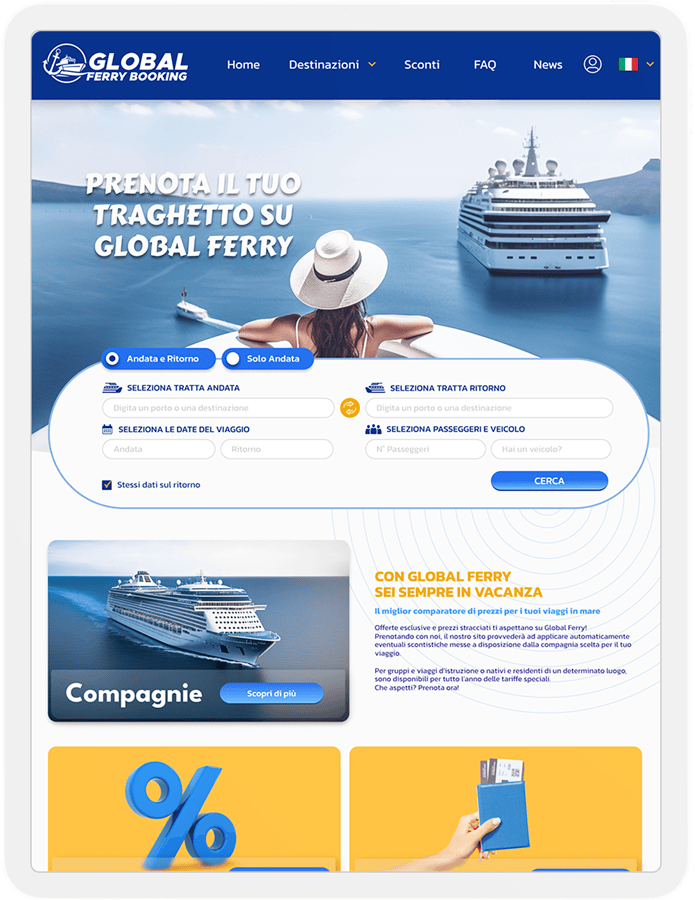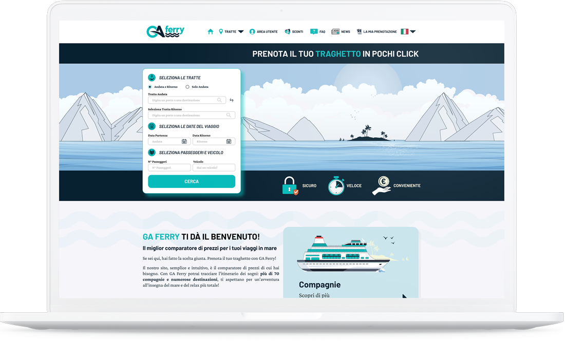 CoastConnect offre un sito con design moderno e intuitivo, sviluppato con l'aiuto di psicologi cognitivi. La navigazione e la gestione delle prenotazioni sono semplici, con informazioni presentate in modo chiaro e senza ricerche complicate.
